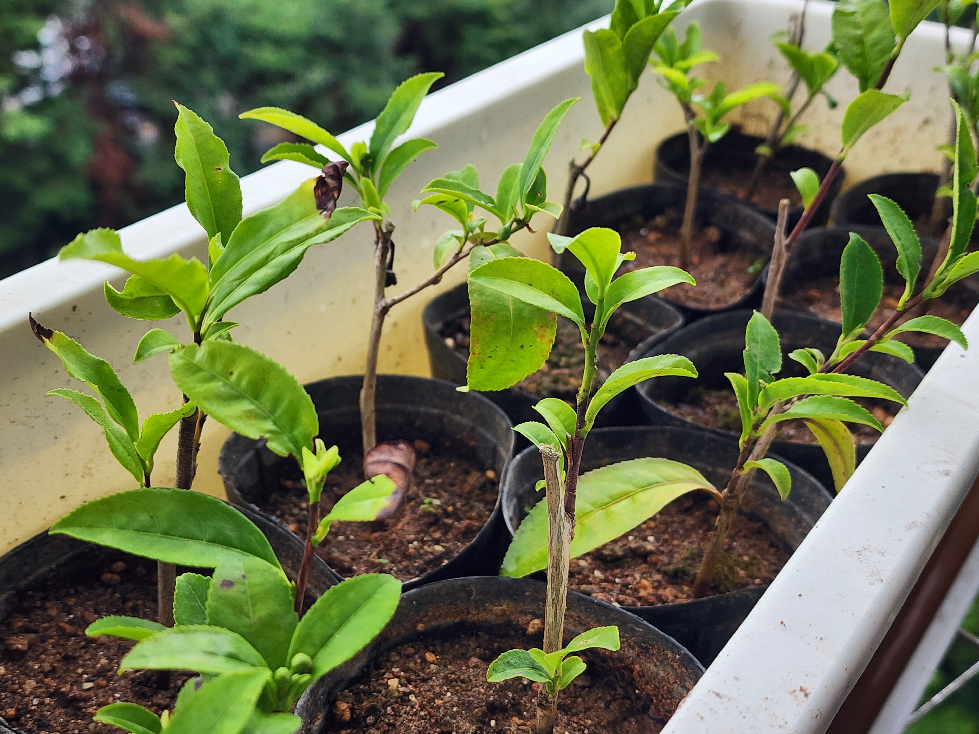 나의 은퇴 후 차 사업에 관한 관심은 좀 제쳐두고, 현실로 돌아와서 건축가임에도 불구하고, 아직 전원주택 하나 없이 죽어라 일만 하면서 아파트에 살고 있는 상황에서도, 그냥 넘어가기엔 세월이 너무 아까워서, 베란다 녹차 재배 및 차 제조에 돌입한다. 육종 따위 상관없이 일단 인터넷에 저렴이 15cm 정도의 녹차 묘목(묘목이라 하긴 좀 그렇고, 그냥 가지를 땅에 꽂아 잎이 10개쯤 난 녀석)을 판매하고 있어 6포트를 주문했고, 마침 카드 결제 실수로 두 번 결제하여 12포트를 주문, 택배비도 두 번 결제했다. 사장님은 확인 전화도 안 주시고 신나서 서비스 1포트 포함 13포트를 배송해주셨다. 삼복 더위에 다 짓눌려서 겨우 목숨을 부지하고 배송된 녹차 나뭇가지들은 젖은 신문지를 둘러쓴 비닐 포트에 들어 있었고, 배송비 포함 17,000 X 2 = 34,000원, 합계 13포트, 수고 15cm~30cm, 잎 5개~10개, 가지꽂이한 어미나무의 잎 크기는 거의 포트 한 개만 했다. 녹차나무는 뿌리가 직진성이 강하여 노지에 심고 나서 적당히 크면 옮겨 심으면 잘 죽는다고 하여 포트에 일단은 두었는데, 배수가 잘 되는 상토로 교체 및 좀 길쭉한 화분에 밀식 등을 고려해 정리를 해야겠다. 몇 년 후에 이 포스팅을 보면 또 할 말이 많으려나?