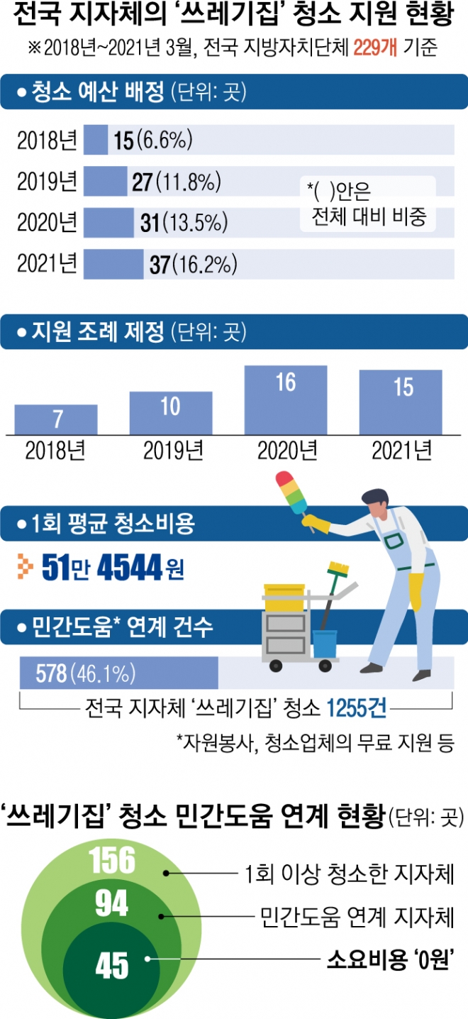 전국 지자체의 ‘쓰레기집’ 청소 지원 현황1). 서울신문 2021.